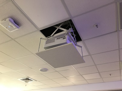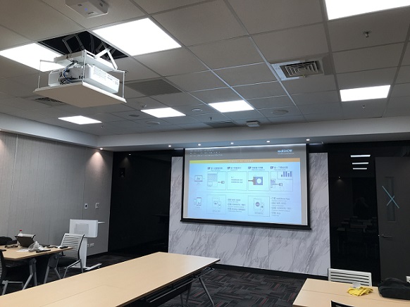 機櫃內設備開啟、投影機升降架下降、投影機開啟(自動切至預設訊號源)、電動投影布幕下降、前排燈光關閉..等動作 , 同時也規劃了系統結束情境 ,一鍵關閉所有設備及燈光 , 方便管理會議室內的設備 , 省時又節能 。