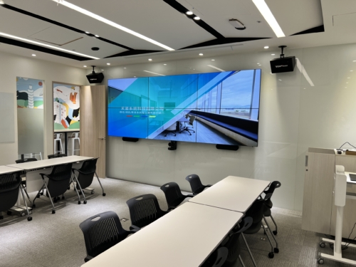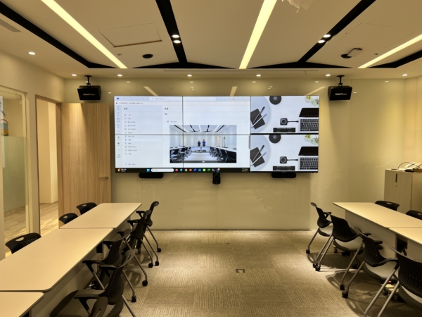現場為可容納40人的大會議室 , 原為2台85吋商用顯示器並排使用 , 但因覺得畫面太小不清楚 , 經討論後規劃適用於現場的2×3拼接液晶電視牆尺寸 , 並具備全畫面、6組單獨畫面、1組2×2大畫面+2組單獨畫面…等多種切換模式。